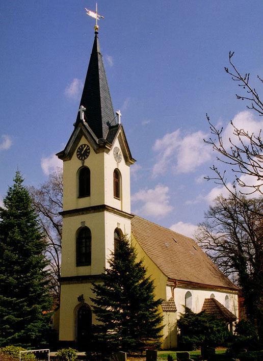 noch im Jahre des Brandes 1746 wurde in der Kirchgemeinde unter Pfarrer Horn der Entschluss gefasst, eine neue Kirche zu errichten. und so entstand unsere heutige Kirche, zunächst ohne Turm und konnte im November des Jahres 1747 eingeweiht werden. sie kostete damals 1917 Taler, 8 Groschen und 3 Pfennige. bis zum bau des heutigen Turmes im Jahre 1886 stand neben der Kirche ein kleines Glockenhaus für zwei Glocken.